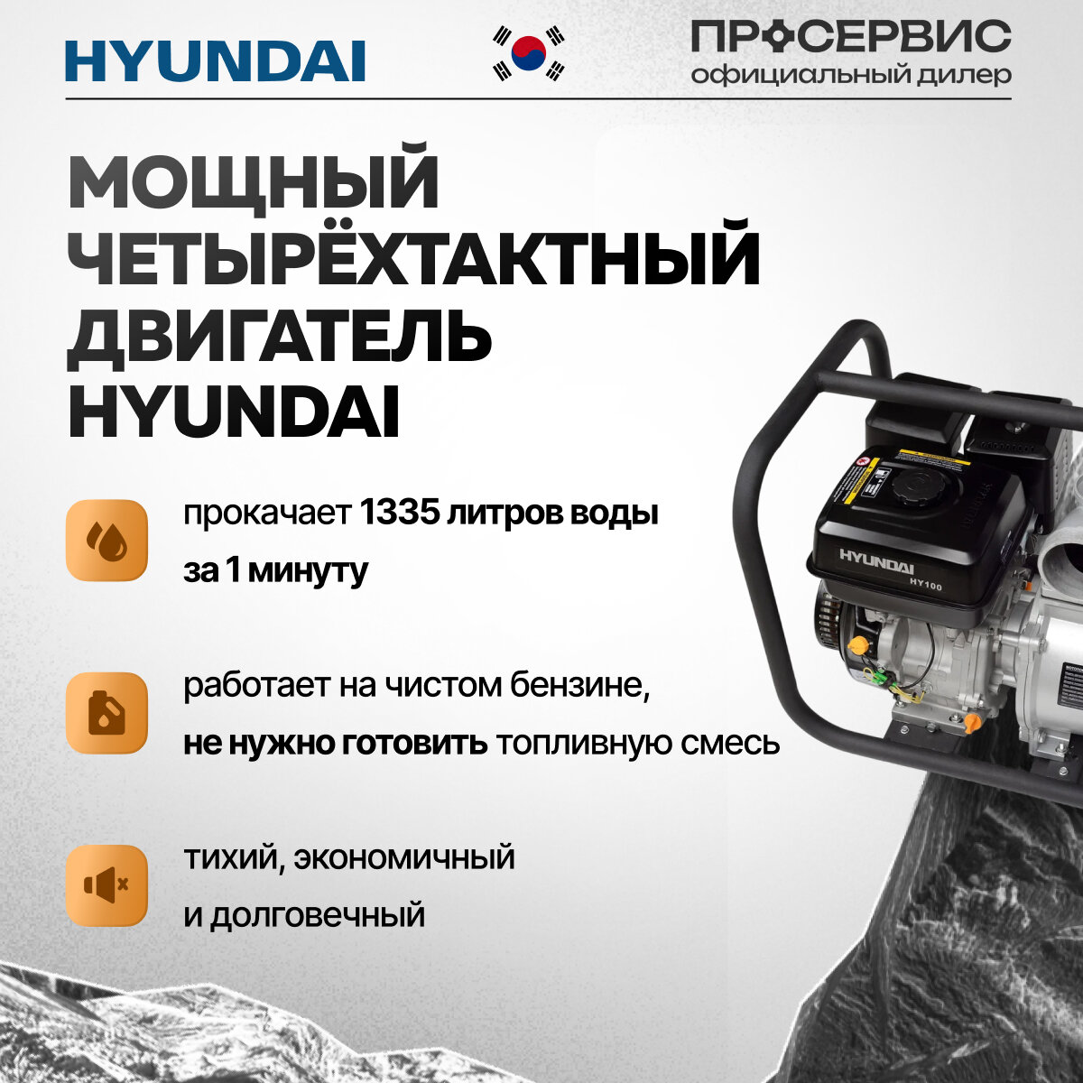Мотопомпа бензиновая Hyundai HY 100, для чистой воды, 1335л/мин