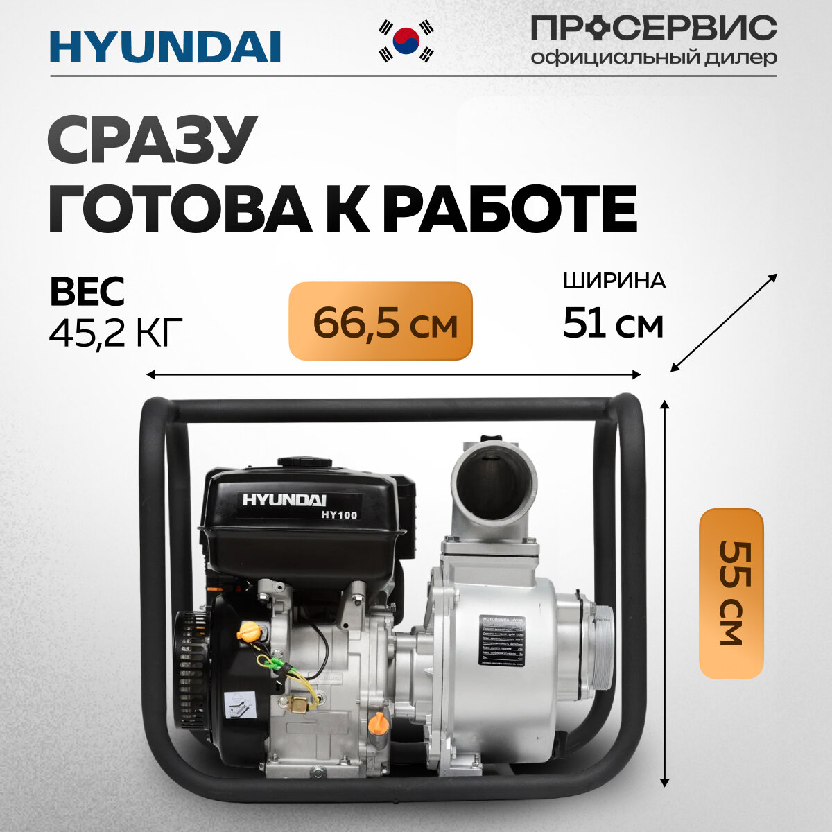 Мотопомпа бензиновая Hyundai HY 100, 9 л.с, 1335 л/мин
