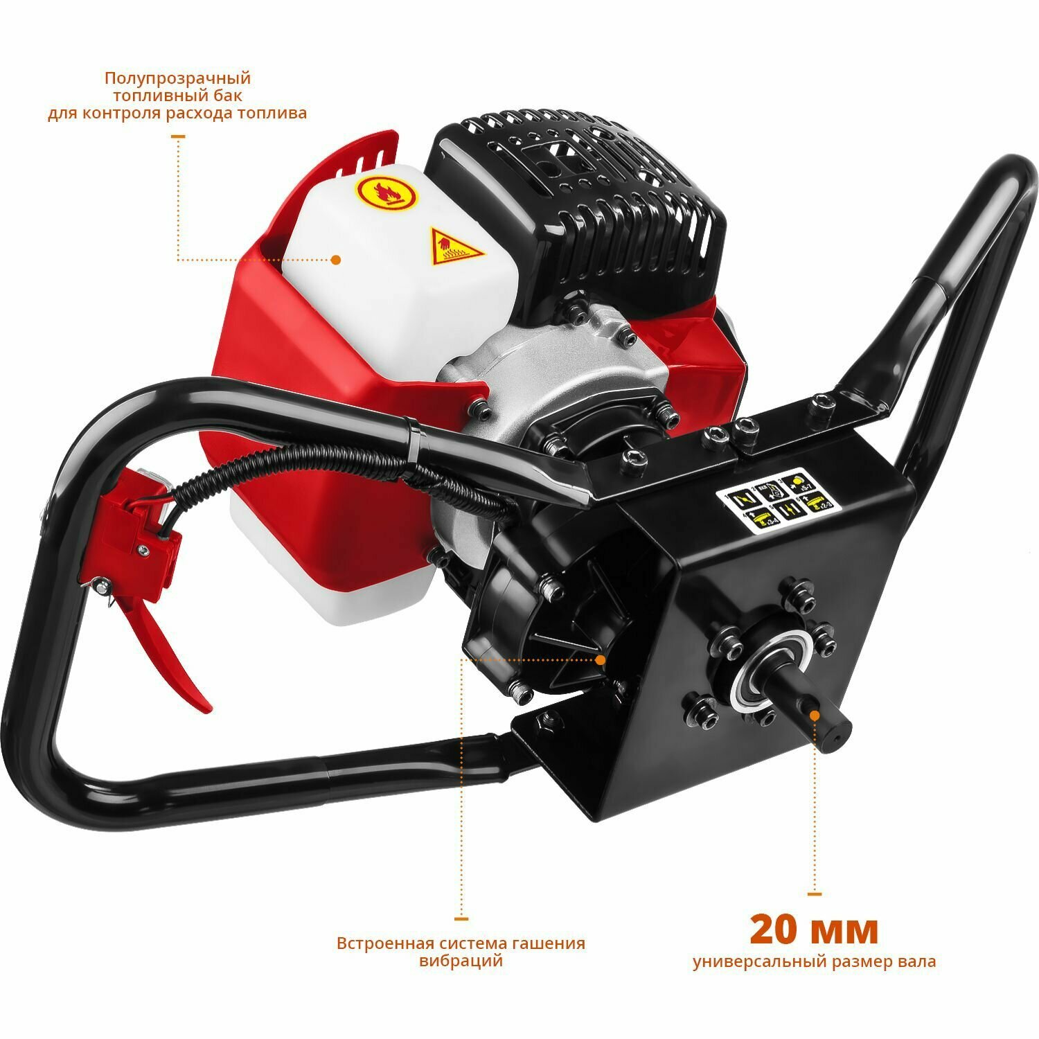 Мотобур (бензобур), d=60-200 мм, 52 см3, 1 оператор, ЗУБР