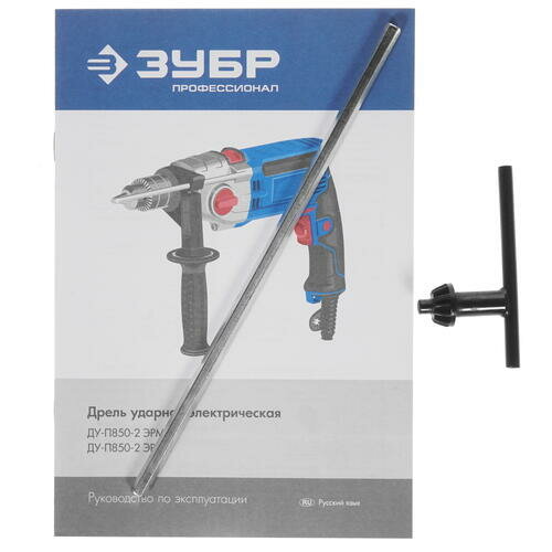 | Комплектация | дрель Зубр ДУ-П850-2 ЭРМК, рукоятка дополнительная, глубиномер, ключ патрона, кейс, руководство по эксплуатации |