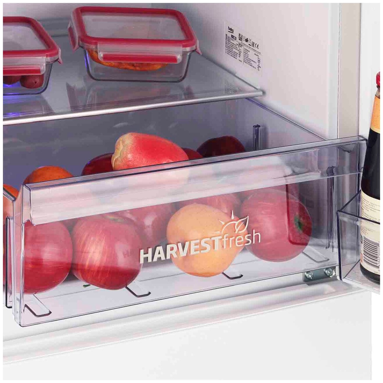 В комплектации: зона свежести с цветной подсветкой, для сохранения свежести фруктов. Подставка для яиц, перевертыш в подставку для бутылок. И бестолковый поддон в нижний ящик морозилки с вкладышем под лёд. За свой прайс оптимален, если выставить по уровню и допилить вопрос с креплением (шумами) получится маст хэв. |