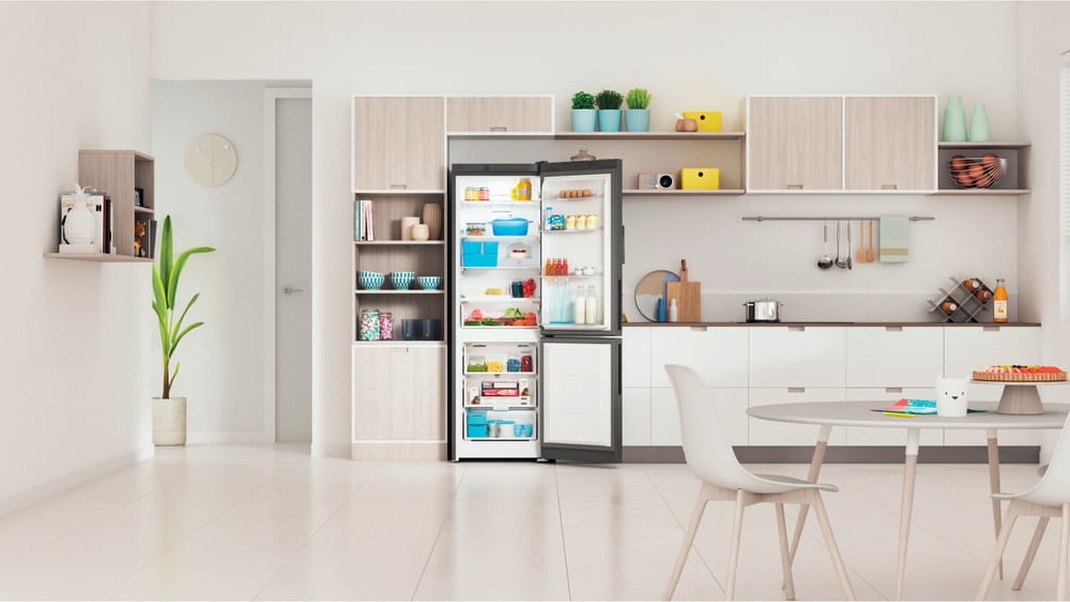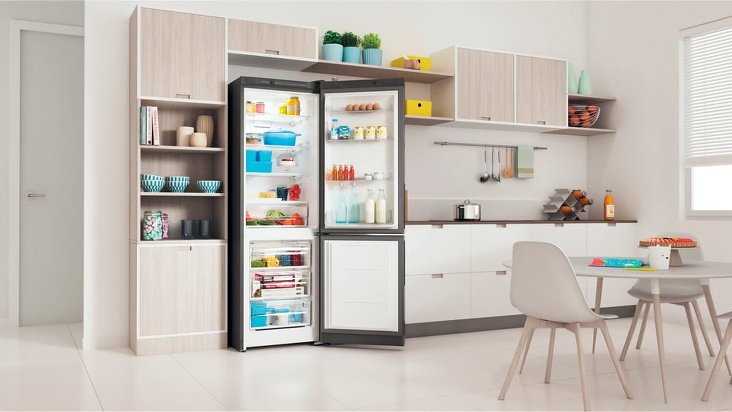 У нас холодильник в белом цвете, отлично вписался в интерьер кухни. Самостоятельно перевесили дверцу, сложностей не возникло. |