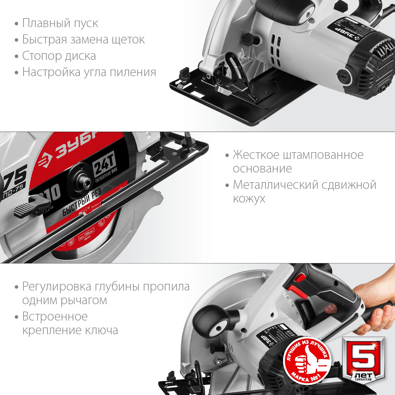 Дисковая пила Zubr ПД-75