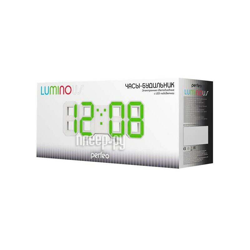 Часы-будильник Perfeo "LUMINOUS" PF-663 (белый, зелёный)
