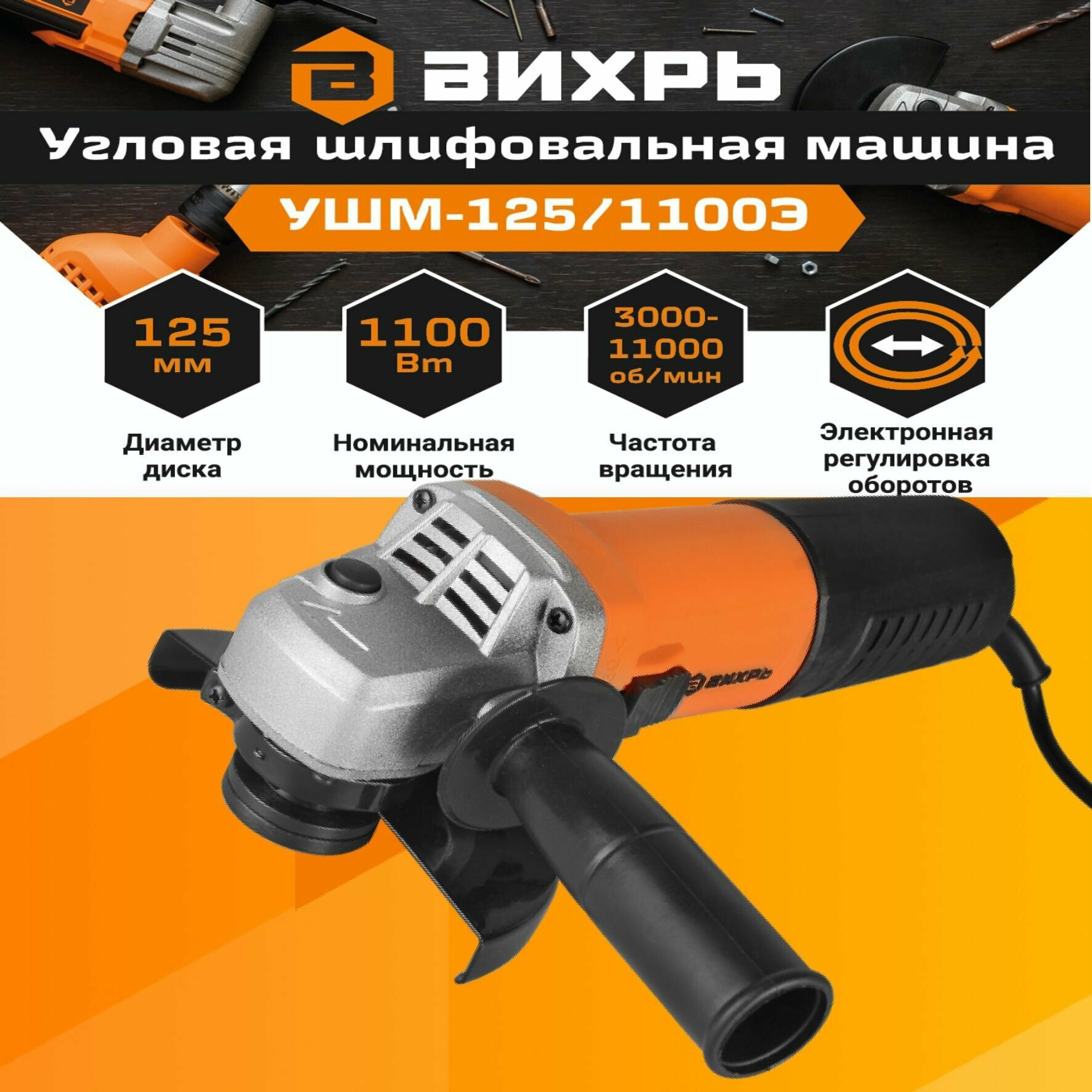Купить Угловая шлифмашина Вихрь УШМ-125/1100Э [72/12/10]