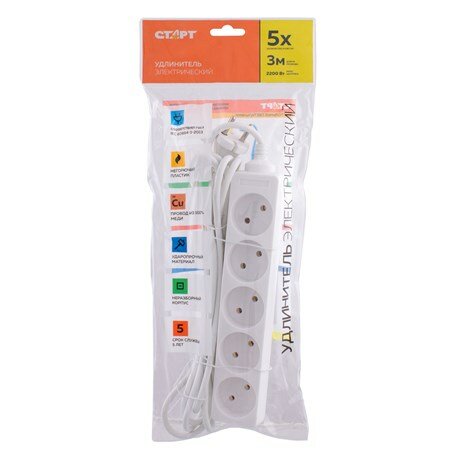 Удлинитель сетевой старт, S 5x3, колодка 5 розеток, шнур 3 м