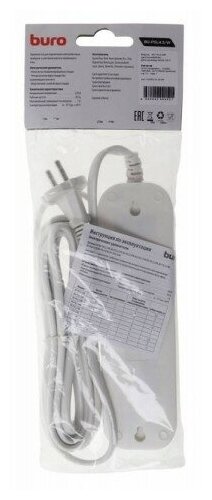 Удлинитель Buro BU-PSL4.5/W, 4 розетки, 5 м, б/з, 7А / 1500 Вт белый