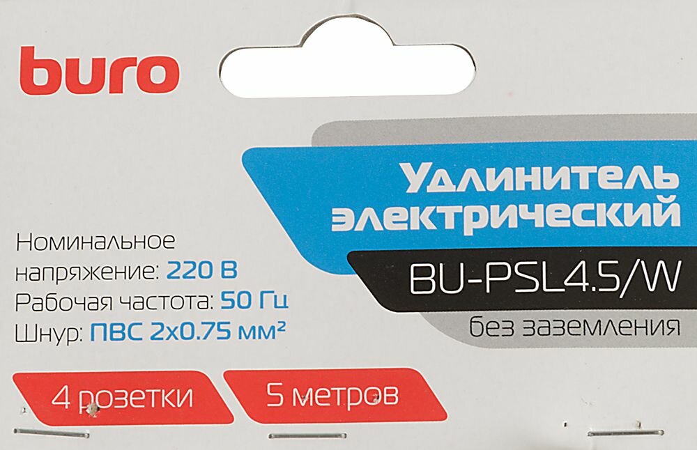 Сетевой удлинитель Buro BU-PSL4.5/W 5м (4 розетки) белый (пакет ПЭ)