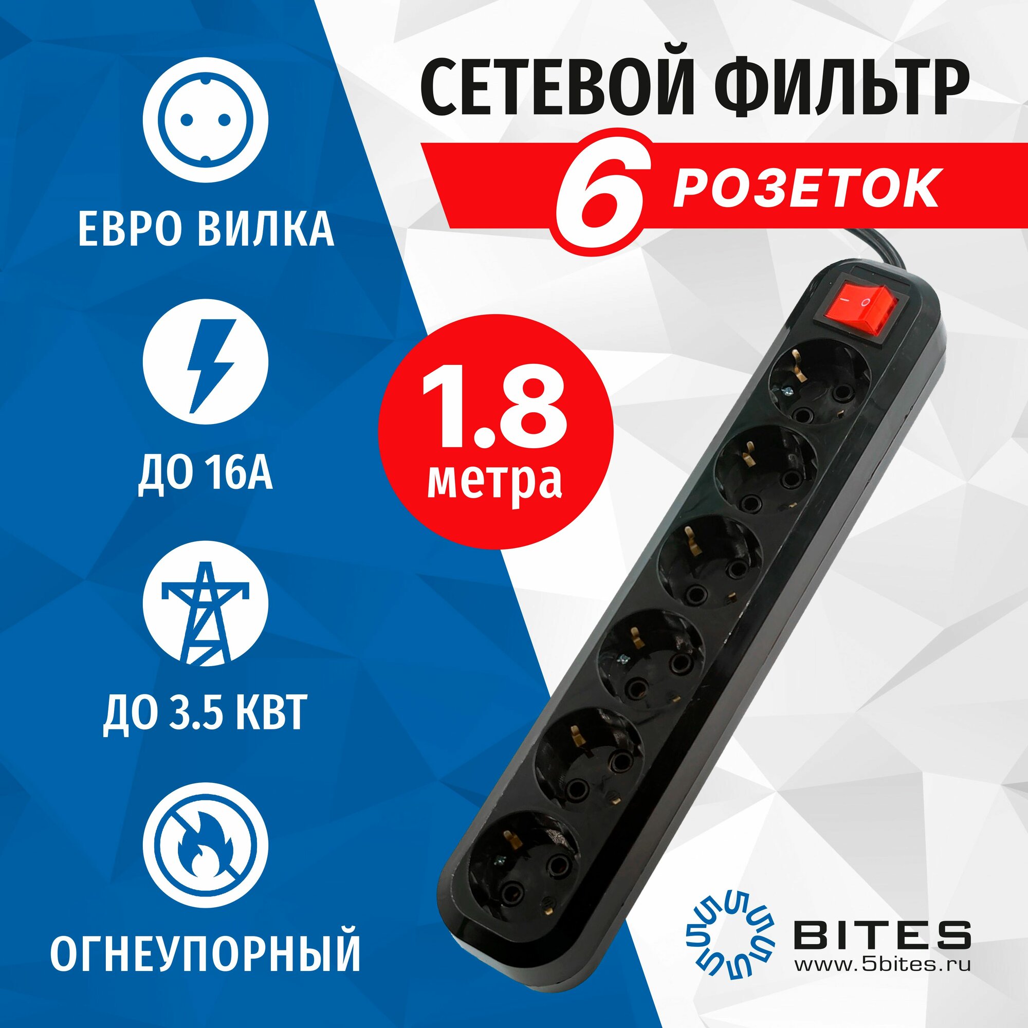Сетевой фильтр 5bites 1.8м, 5 розеток, 16A, черный SP5B-318