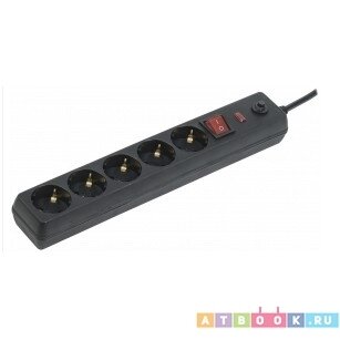 Сетевой фильтр СФ-05К-выкл. 16А 5 мест 3м 3х1мм2 черный IEK