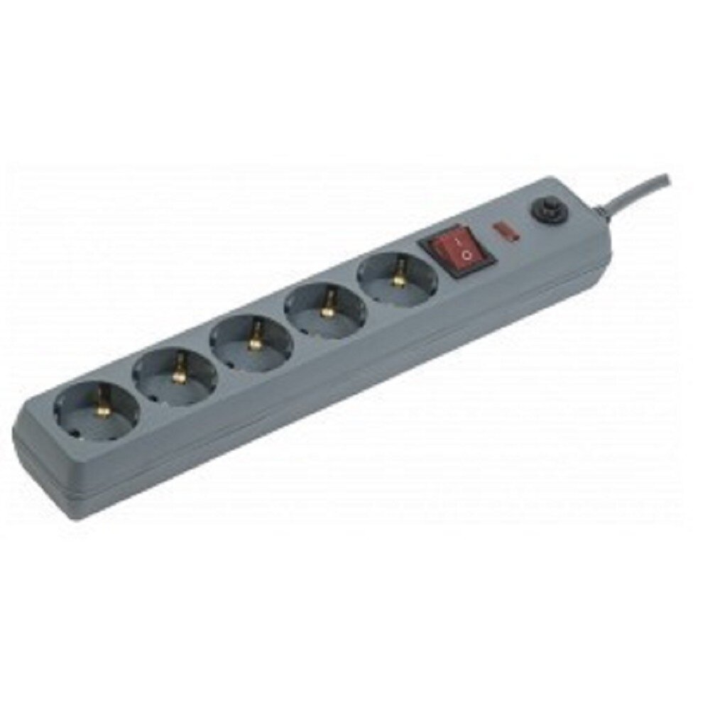 Сетевой фильтр IEK СФ-05К-выкл, 3,5 кВт, 16 А, с заземлением, с кнопкой, 5 розеток, 5 м, серый