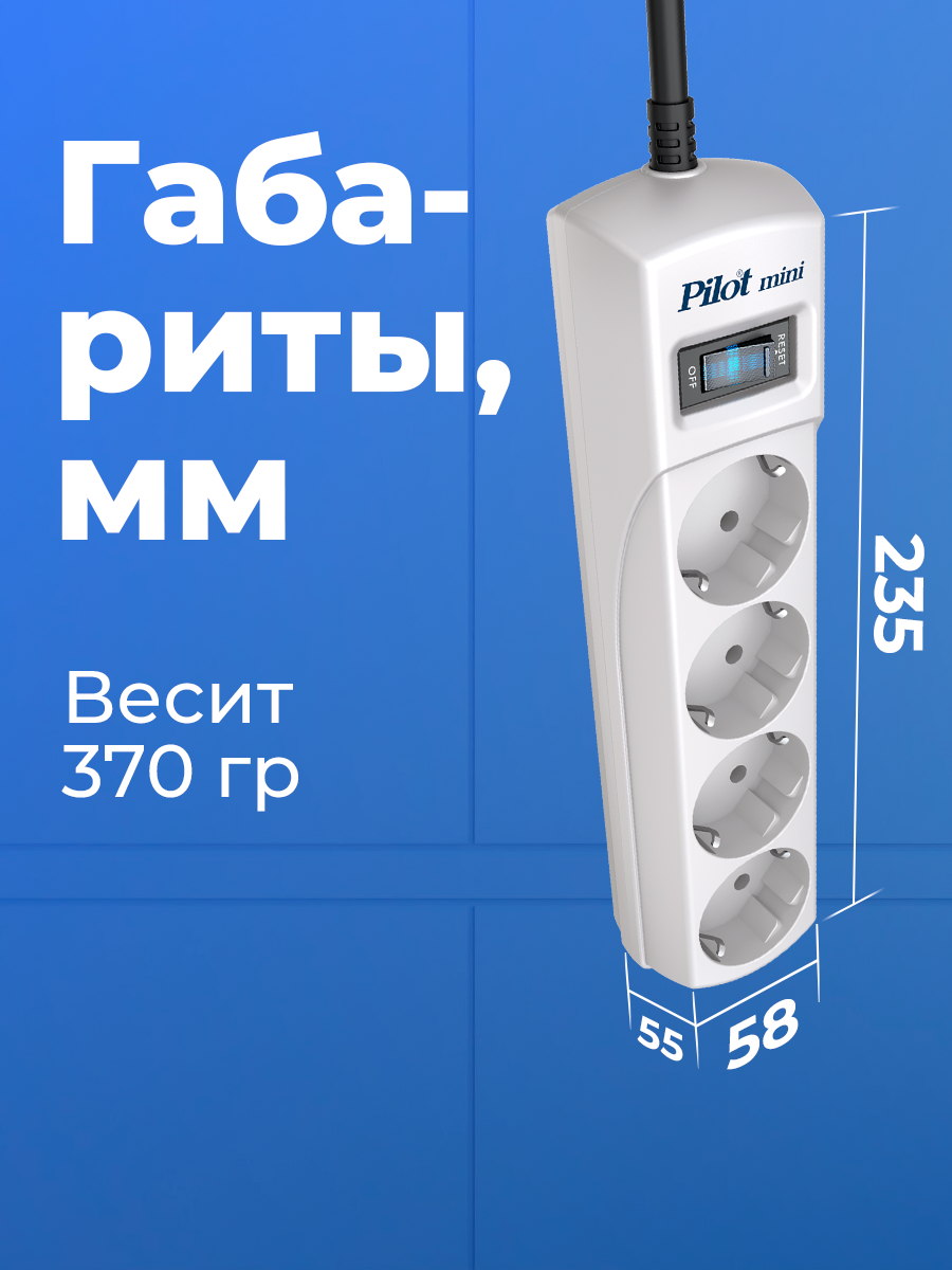 СохранитьСетевой фильтр Pilot mini 7м (4 розетки) белый (коробка) . интересное: