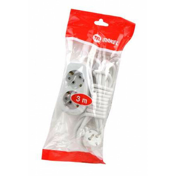 Макел удлинитель на 2 гнезда с заземлением 3м ПВС 3х1мм2 2200Вт / MAKEL удлинитель бытовой на 2 гнезда с заземлением 3м ПВС 3х1мм2 2200Вт