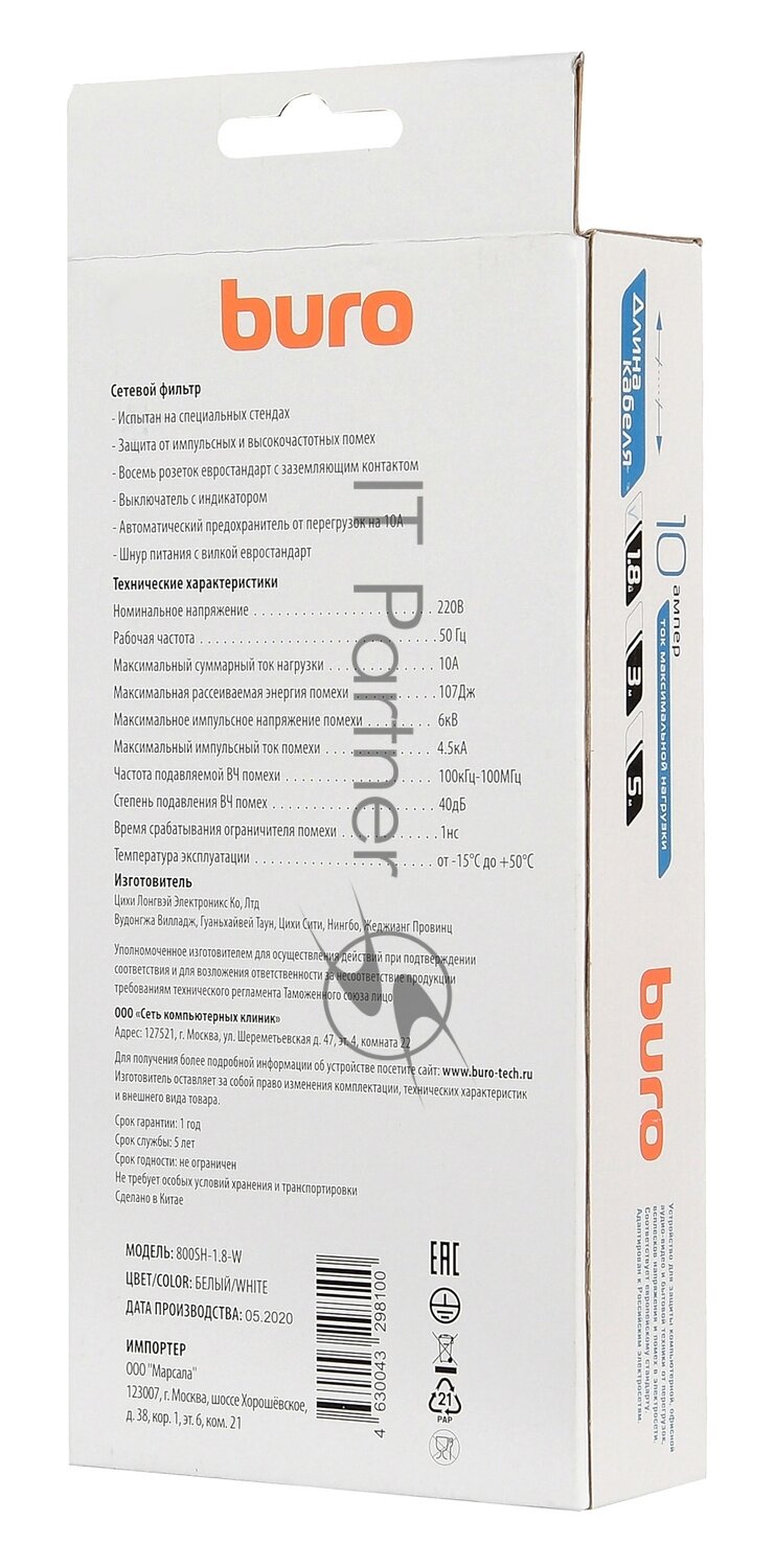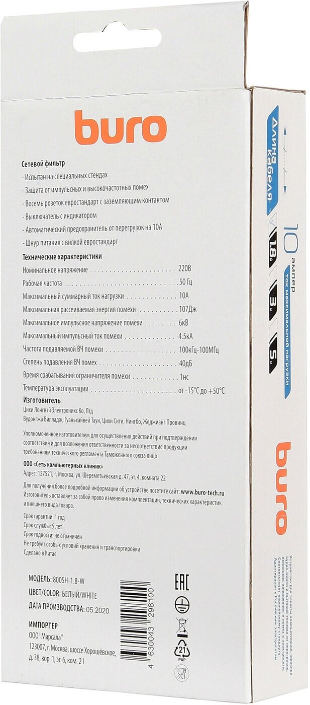 Ниже Вы можете прочитать отзывы на Сетевой фильтр Buro 800SH-1.8-W 1.8м (8 розеток) белый (коробка), ознакомится с подробными характеристиками, посмотреть интересные обзоры и фотографии на Сетевой фильтр Buro 800SH-1.8-W 1.8м (8 розеток) белый (коробка).
