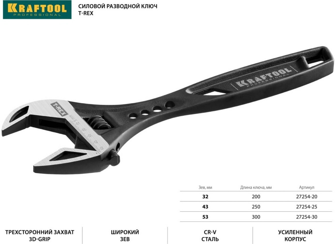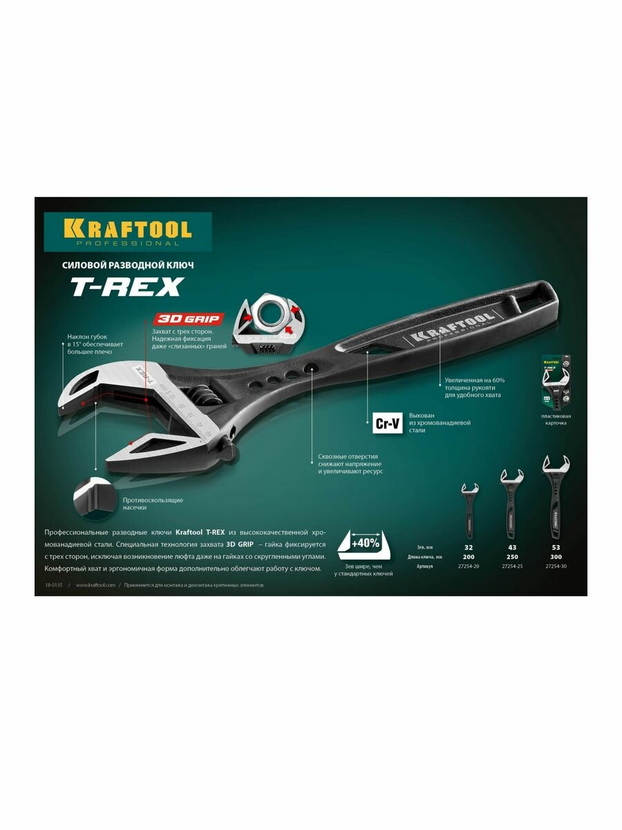 KRAFTOOL T-REX, 300 / 53 мм, Силовой разводной ключ (27254-30)