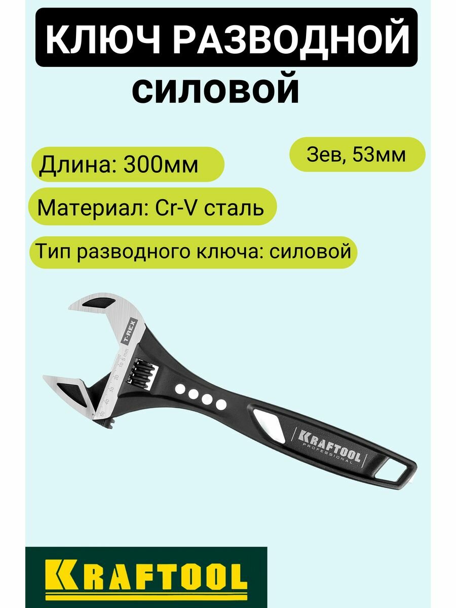Разводной ключ силовой KRAFTOOL T-REX 300 мм захват 53 мм