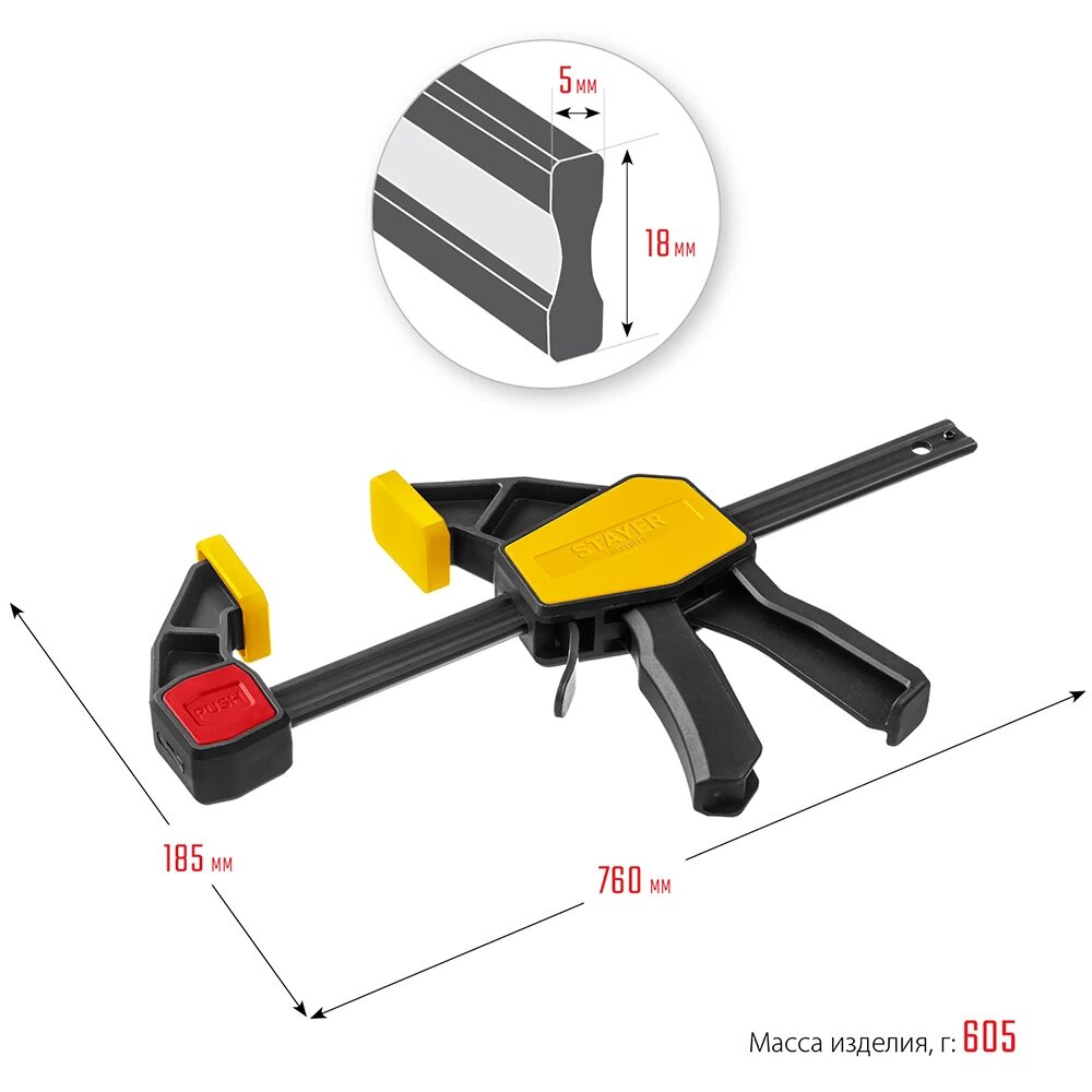 Струбцина STAYER PROFESSIONAL, полиамид, 600 мм, 780 мм, 200 кгс