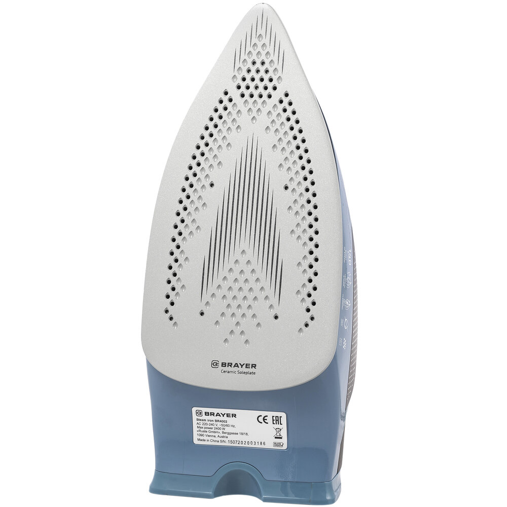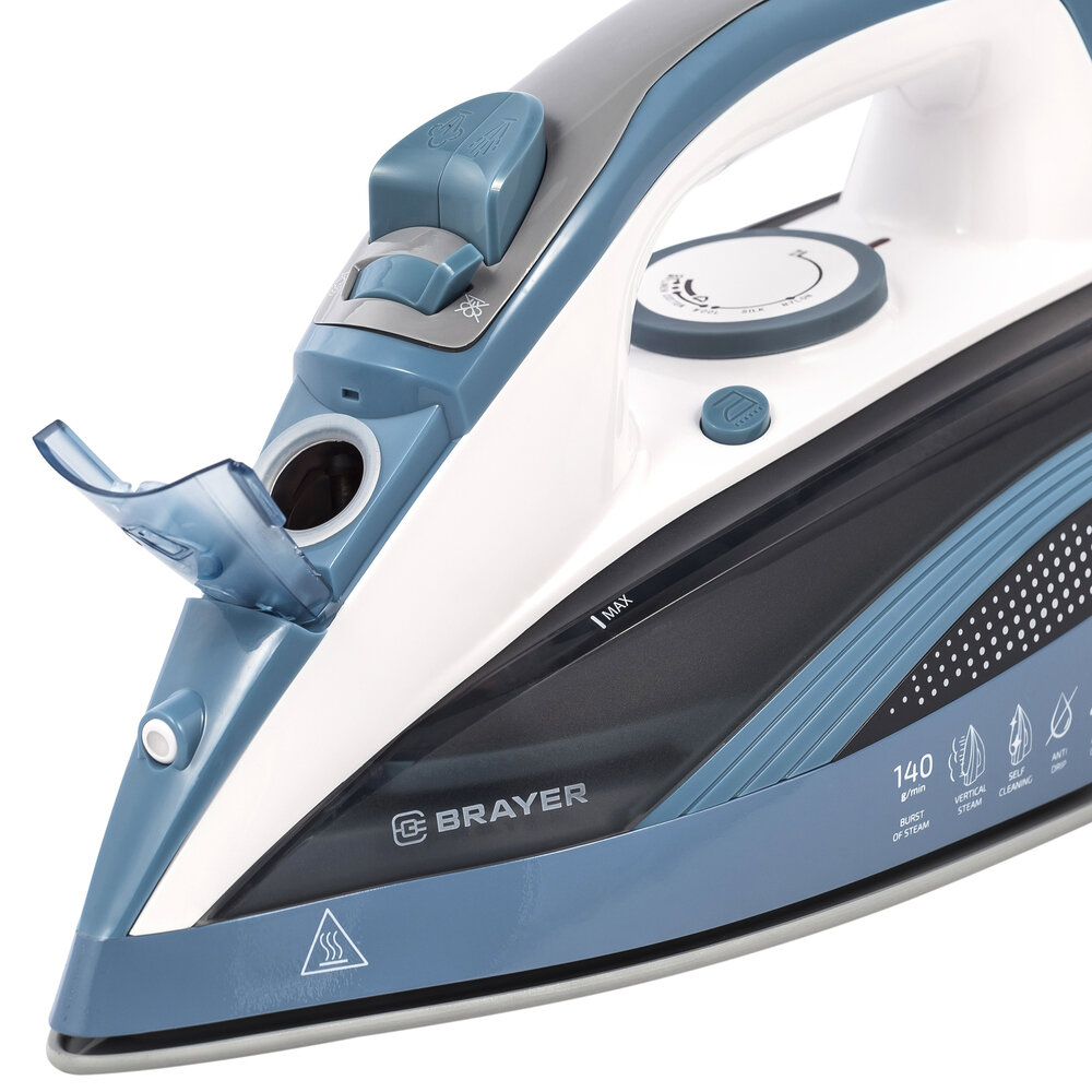 Утюг BRAYER BR4002, 2400 Вт, керамическое покрытие, самоочистка, антикапля, антинакипь, голубой - 1 шт.
