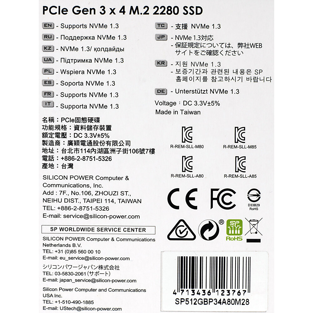 Silicon Power SSD 512Gb A80 SP512GBP34A80M28, M.2 2280, PCI-E x4, NVMe