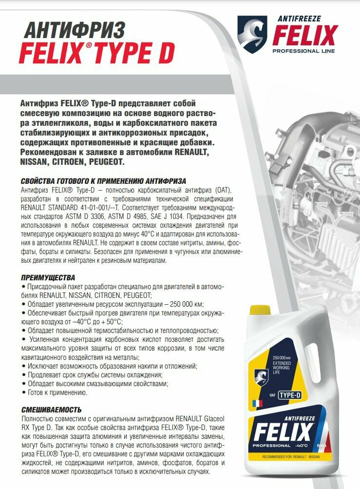 Антифриз FELIX TYPE D 5кг (Renault, Nissan, Citroen, Peugeot)