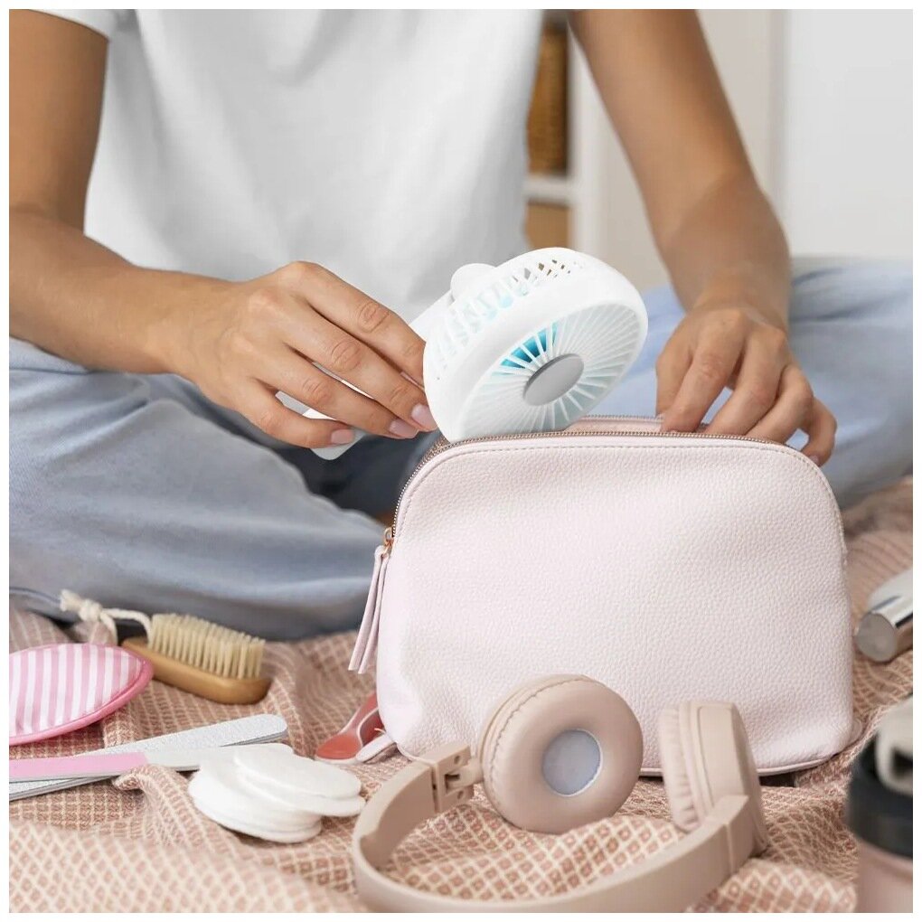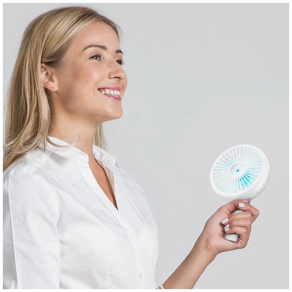| Плюсы: | Качественный пластик, красивый внешний вид, возможность закрепить на подставку или прищепку. Компактный - в жаркую погоду легко взять с собой в сумке. Дует отлично, хватает на долго, можно включить в зарядку/ноут и будет работать бесконечно. |