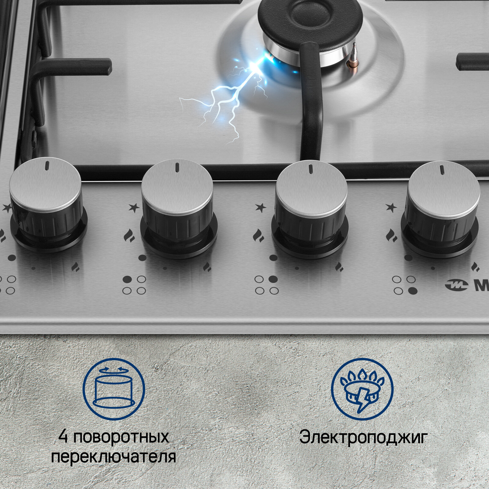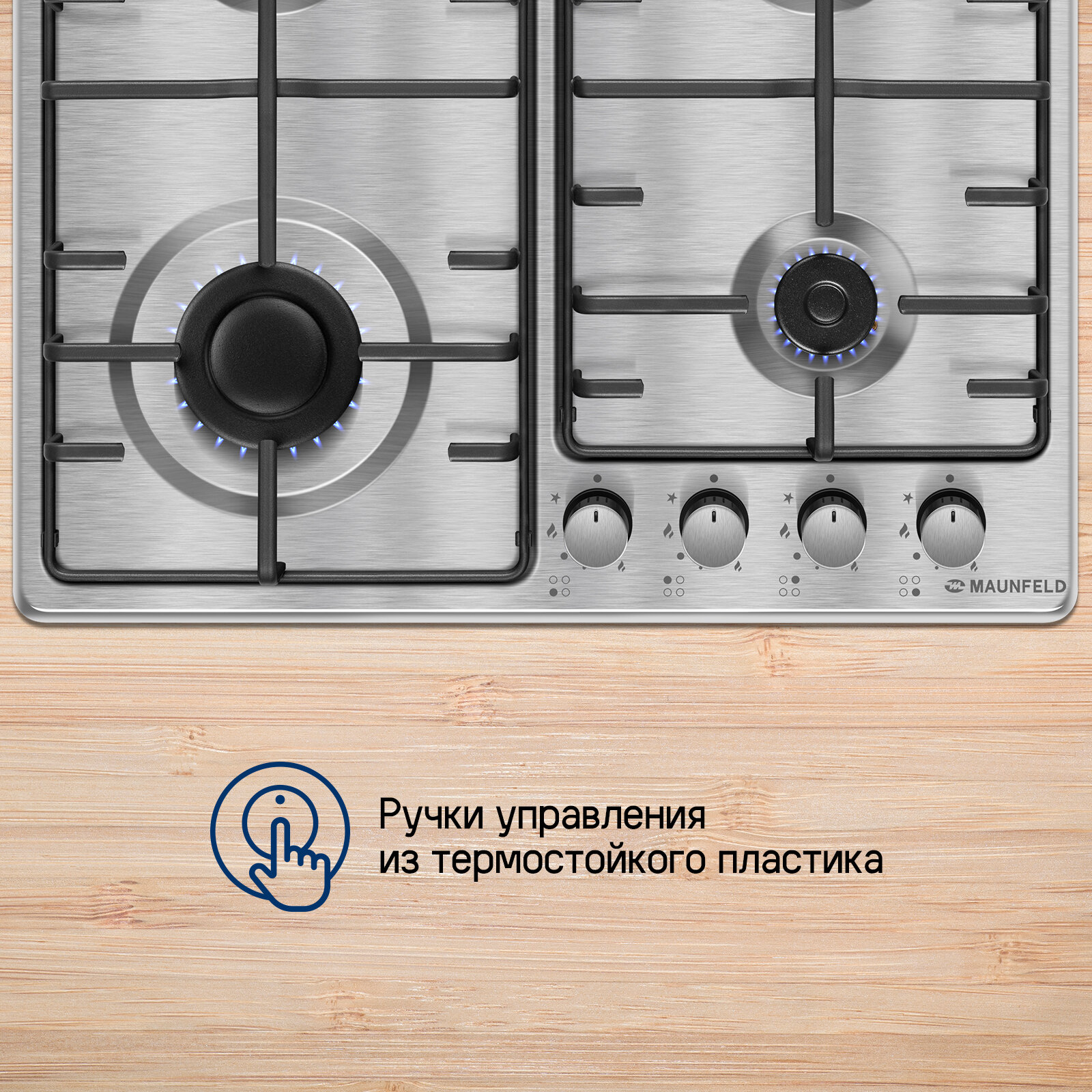 Газовая варочная панель MAUNFELD EGHS.64.3STS-ES, независимая, нержавеющая сталь