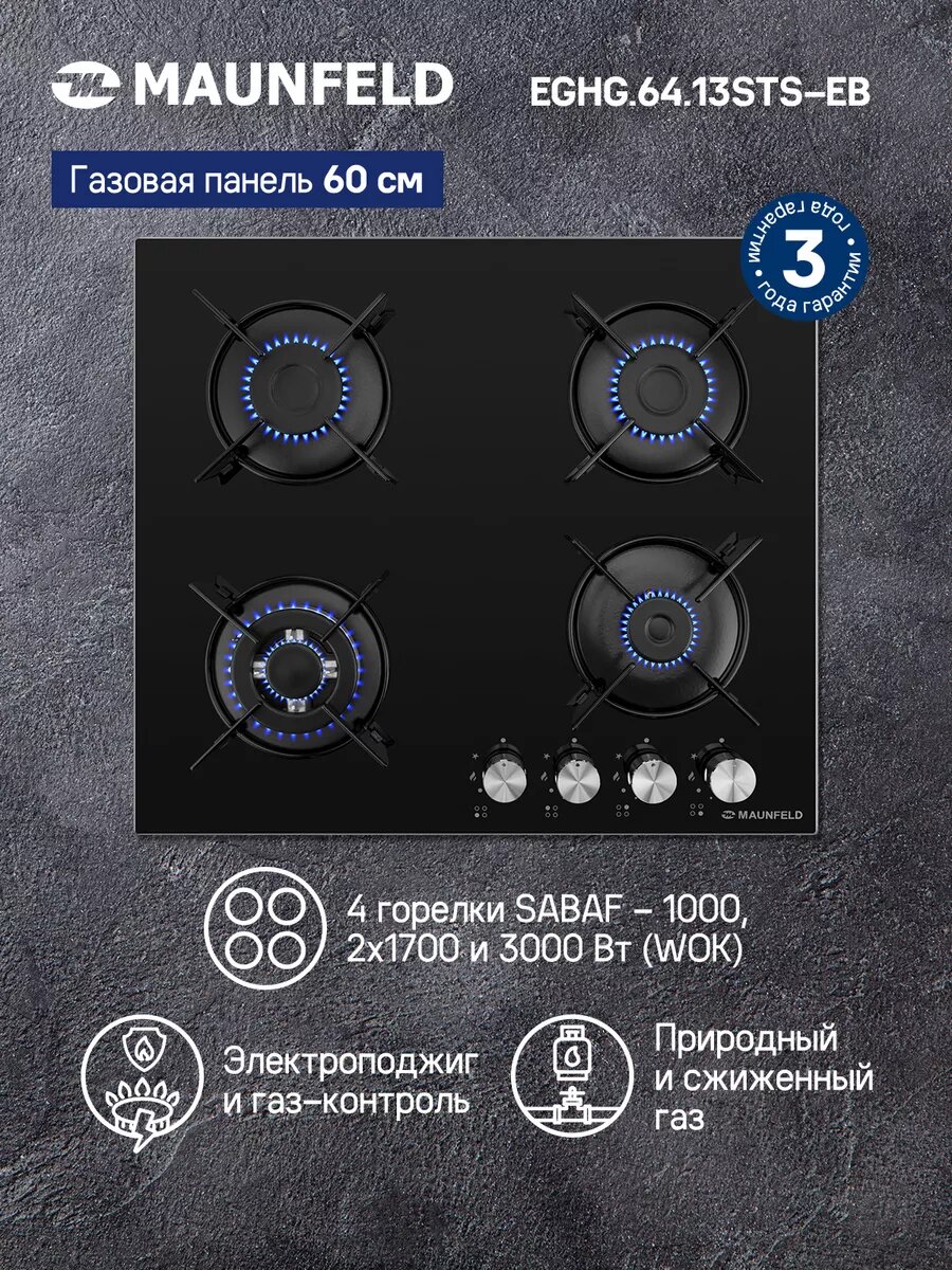 Газовая варочная панель Maunfeld EGHG.64.13STS-EB черный