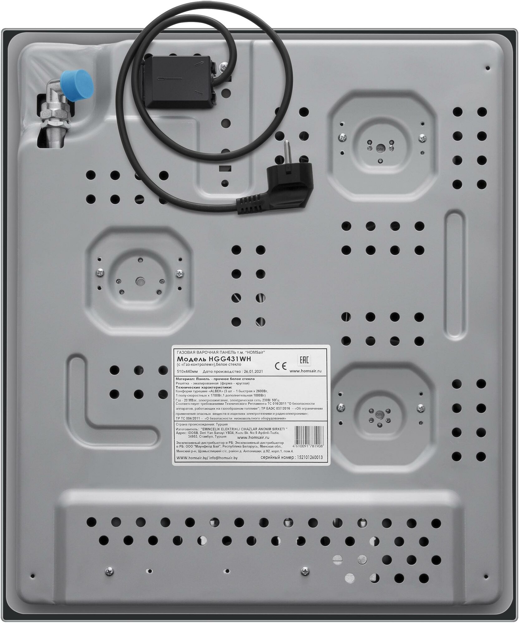 Встр. газ. панель HOMSair Hgg431wh