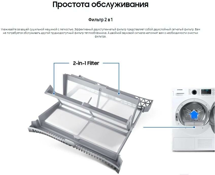 | Минусы: | Несмотря на тепловой насос, немного греет воздух. Будьте готовы к небольшой усадке белья. |