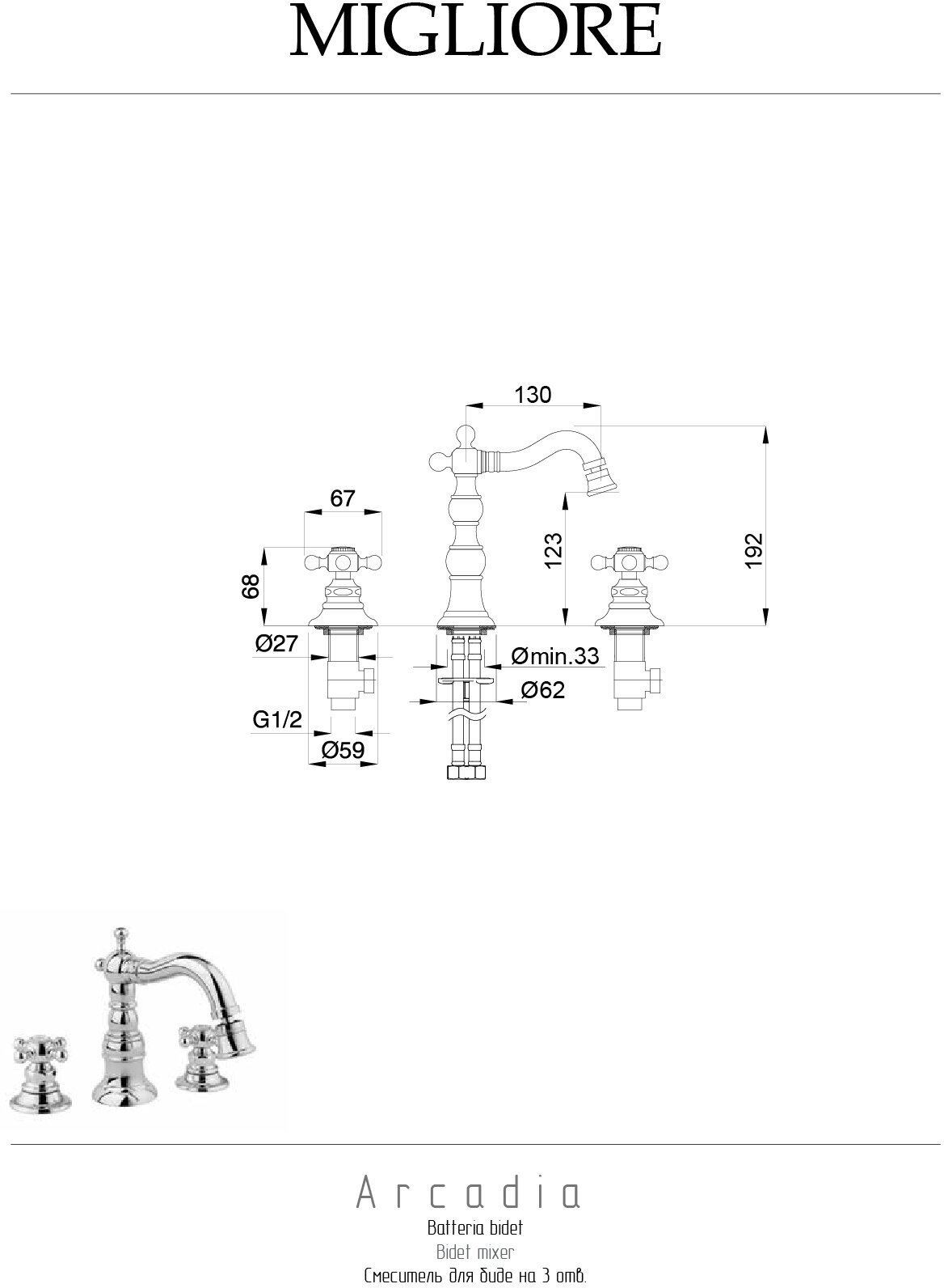 Смеситель для биде на 3 отв., хром Migliore ARCADIA ML.ARC-8325.CR
