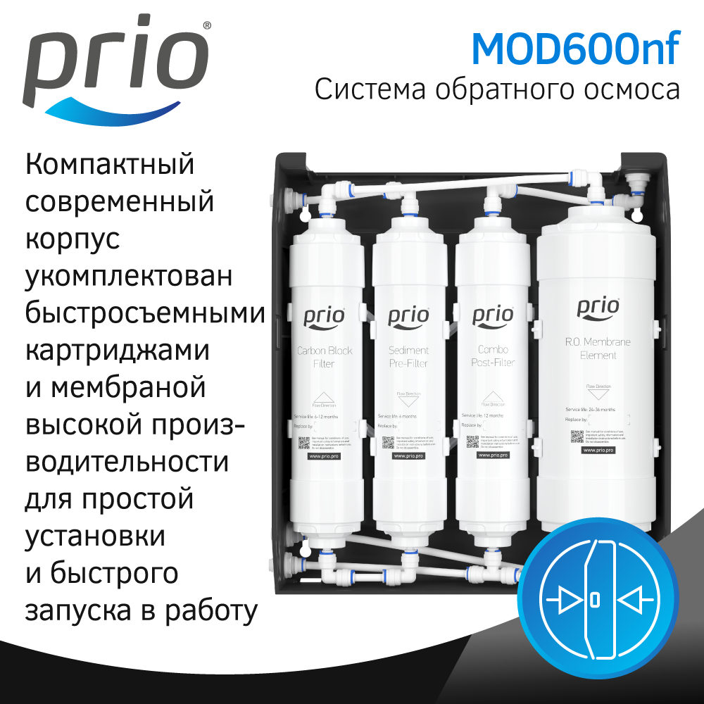 Прямоточная сплит-система обратного осмоса с минерализацией Prio Новая Вода Expert Osmos Stream MOD600nf (без крана) интересное: