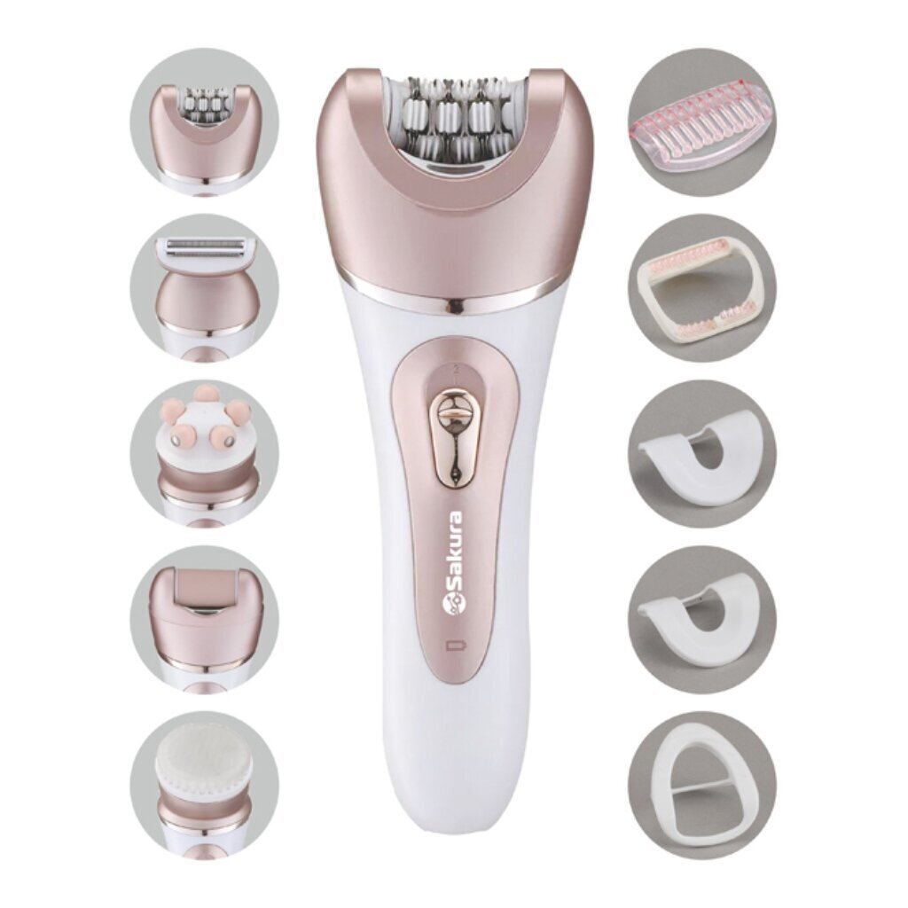 SAKURA Эпилятор Sakura SA-5541WP, 10 насадок, 2 скорости, подсветка, АКБ, розово-белый
