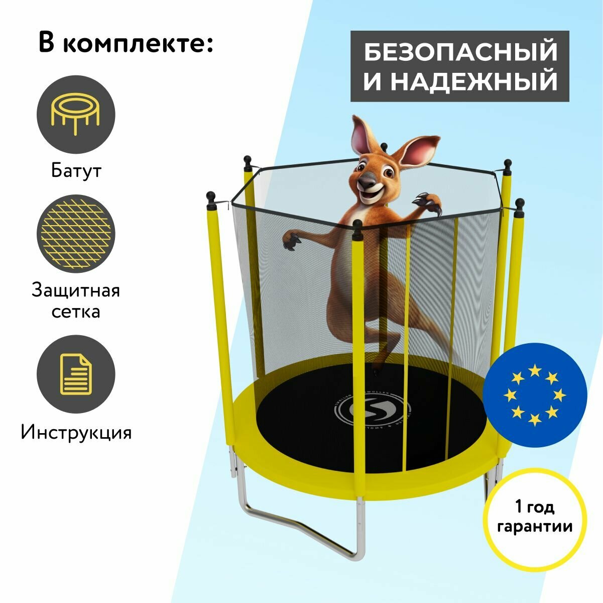 | Плюсы: | Батут именно такой, какой и надо для детей. |