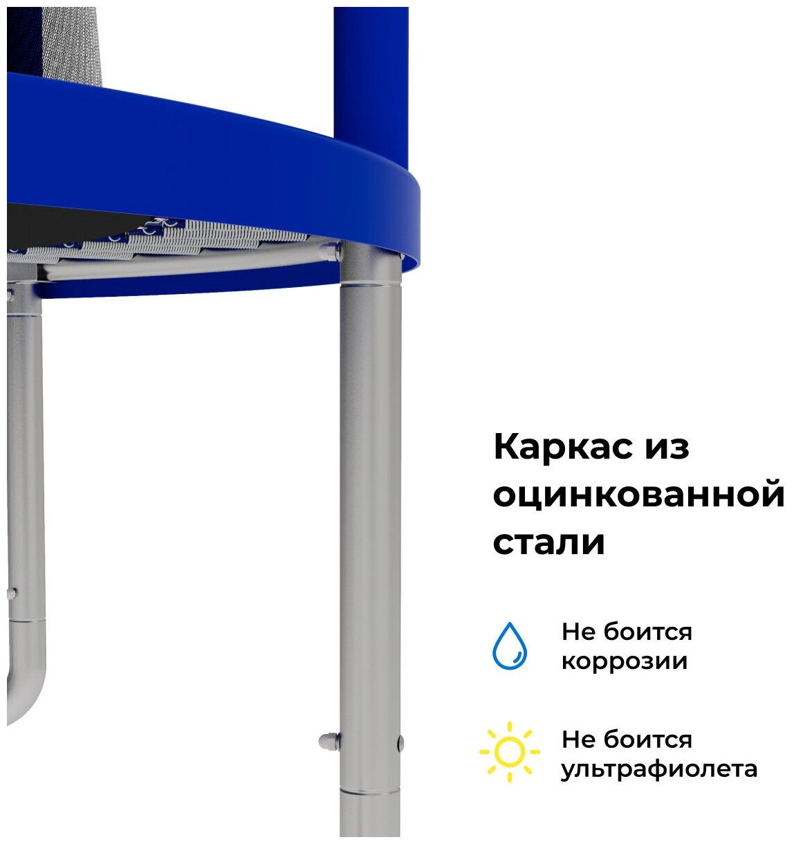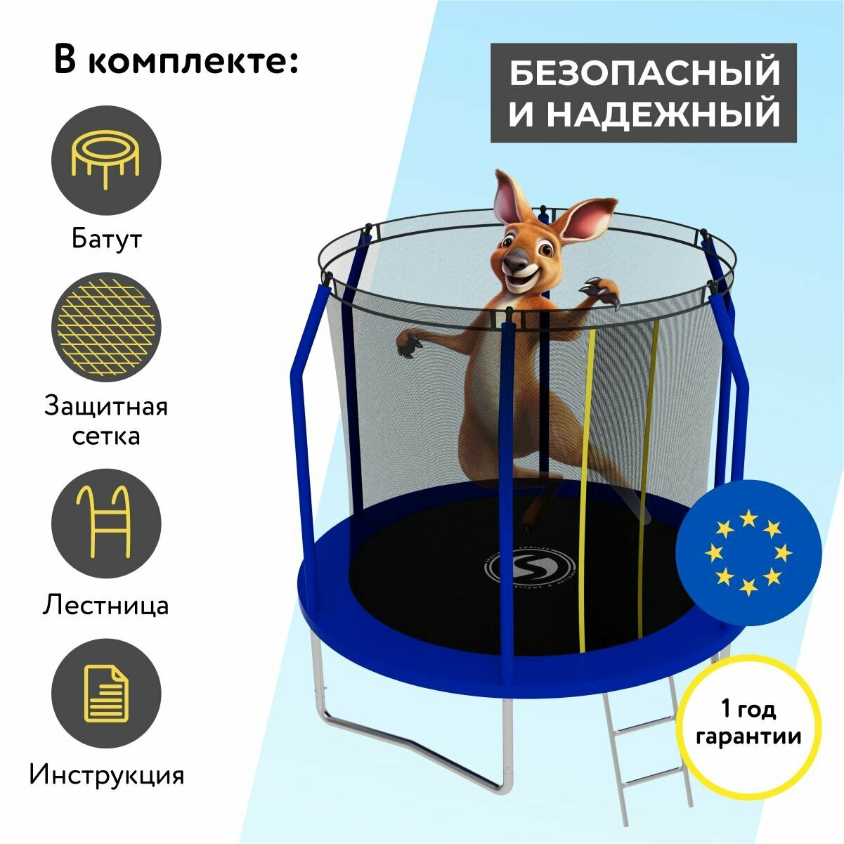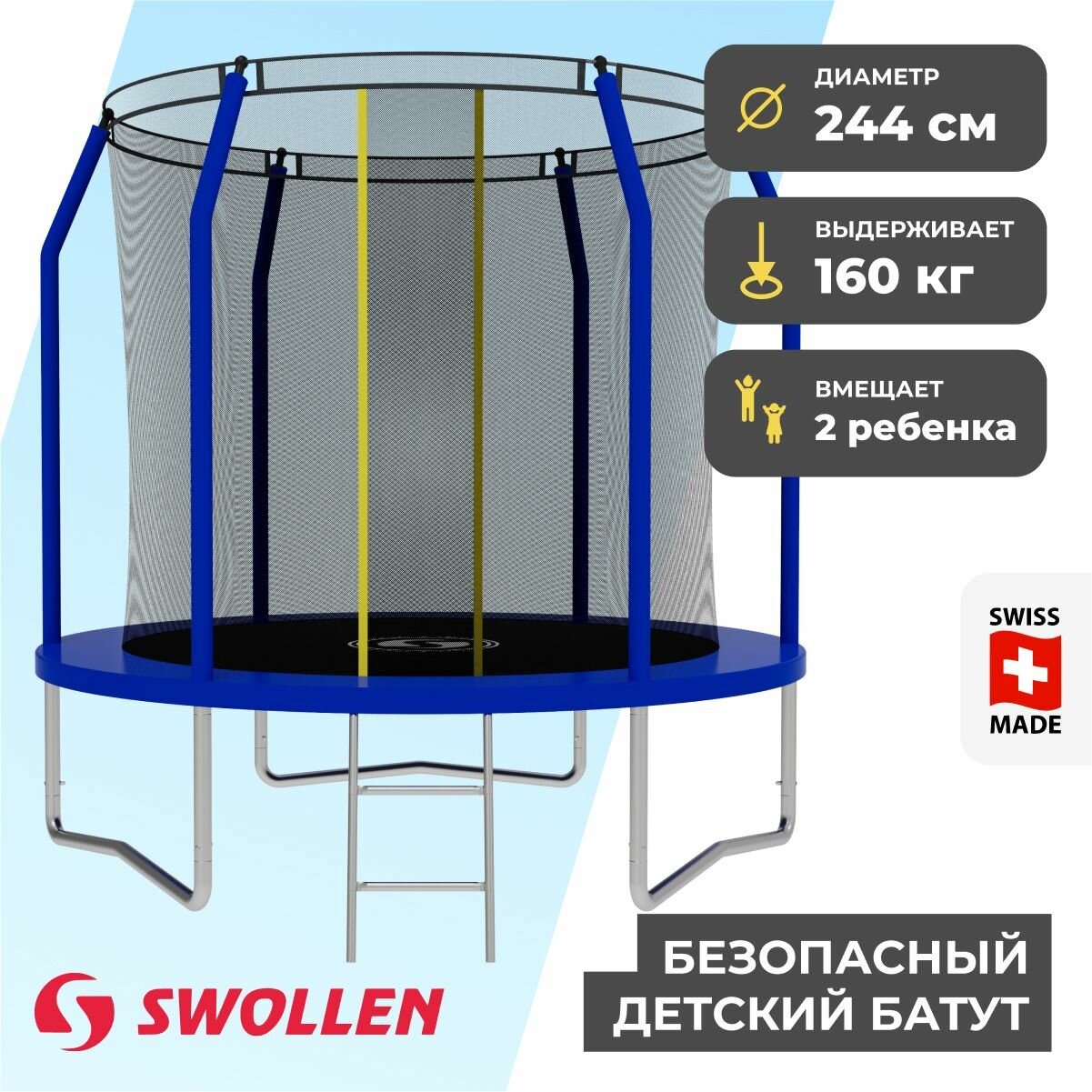 Батут SWOLLEN Comfort Overlap 8 FT (244 см) (Blue) / каркасный / с защитной сеткой / детский / для детей / уличный / для улицы / для дачи / для взрослых / большой / спортивный / для дома