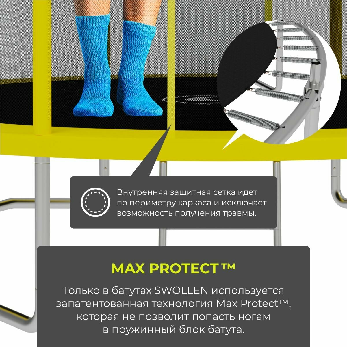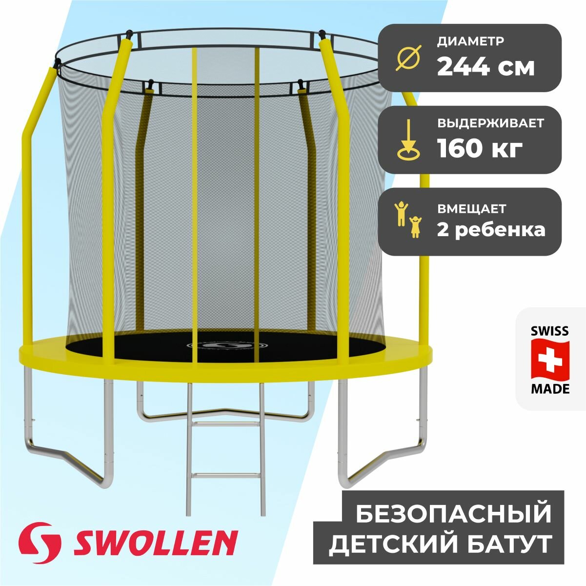 Батут SWOLLEN Comfort Overlap 8 FT (244 см) (Yellow) / каркасный / с защитной сеткой / детский / для детей / уличный / для улицы / для дачи / для взрослых / большой / спортивный / для дома