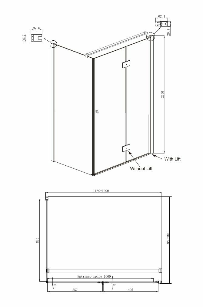 Душевой уголок Ambassador Diamond 90х120 12011108R правый