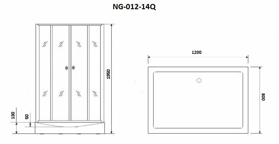 Душ. уголок NG- 012-14Q (1200х800х1950) низкий поддон(13см) стекло матовое, 2 места