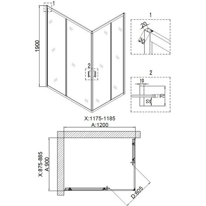 Душевой уголок Belbagno ETNA-AH-22-100/120-C-Cr