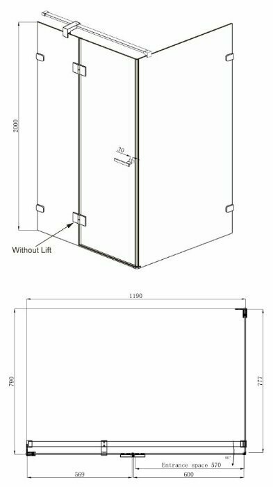 Душевой уголок 120х80 см с распашной дверью Ambassador Abner 10011103L: левостороннее душевое ограждение из стекла 6 мм, профиль хром