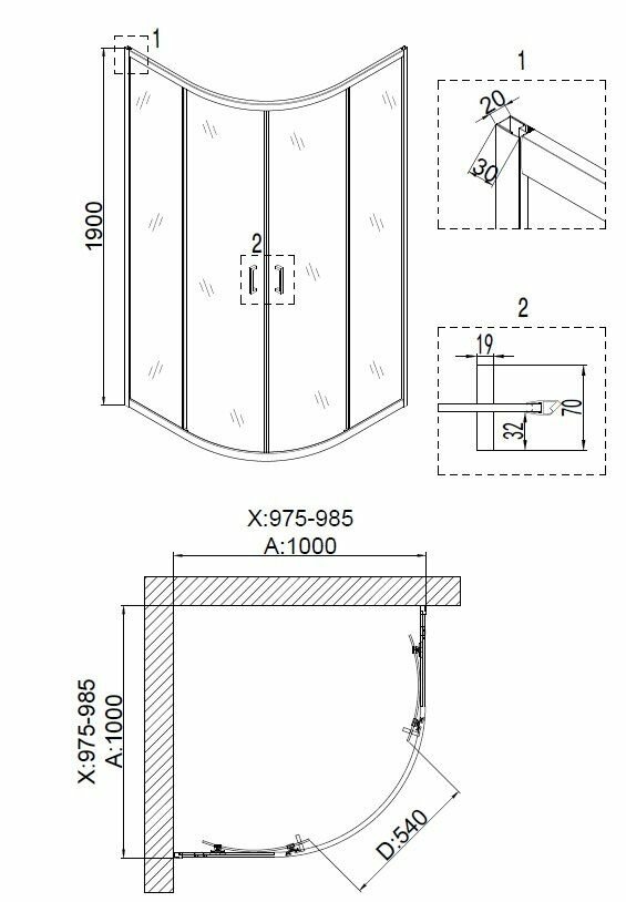 Душевое ограждение NG- 6607-08 (100*100*190) полукруг, двери раздвижные, 1 место