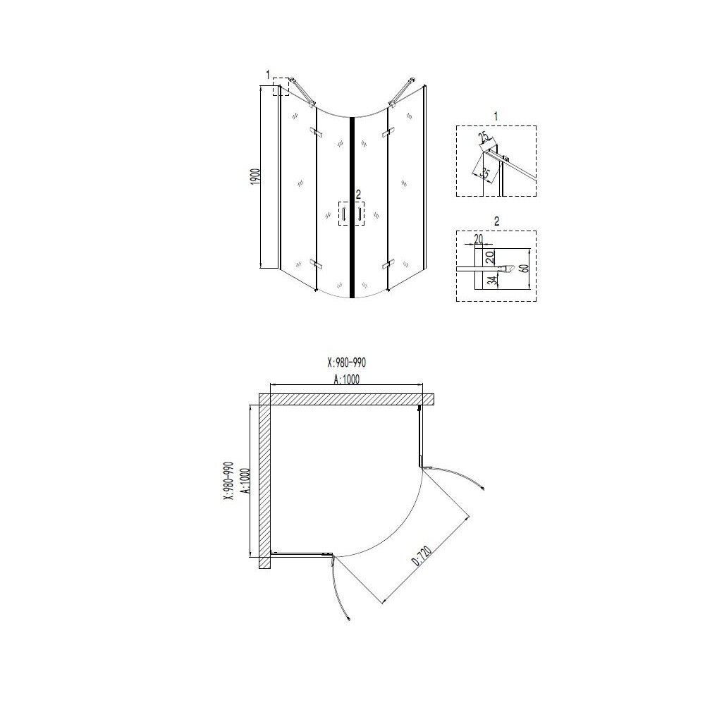 Душевой уголок CEZARES Elena AH 2 100см*90см