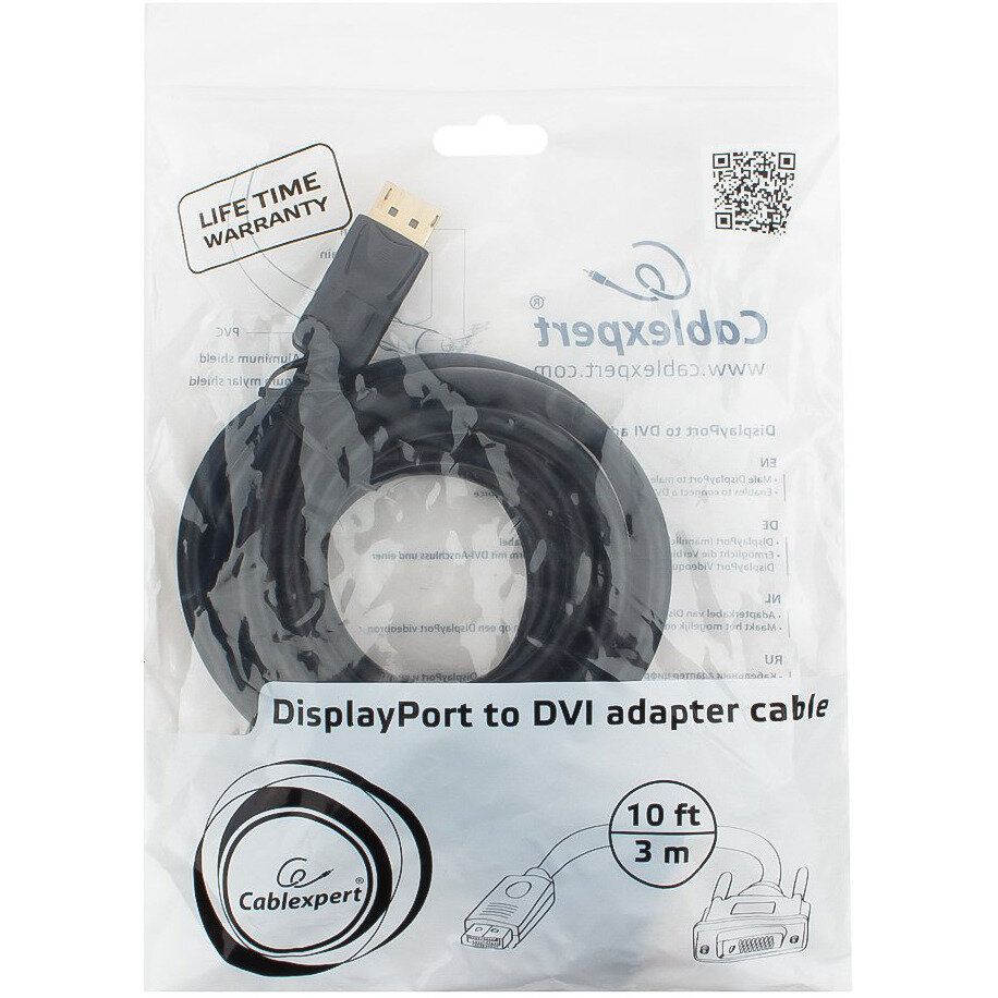 Cablexpert Кабель DisplayPort->DVI Cc-dpm-dvim-3m 3м 20M/25M черный экран пакет .