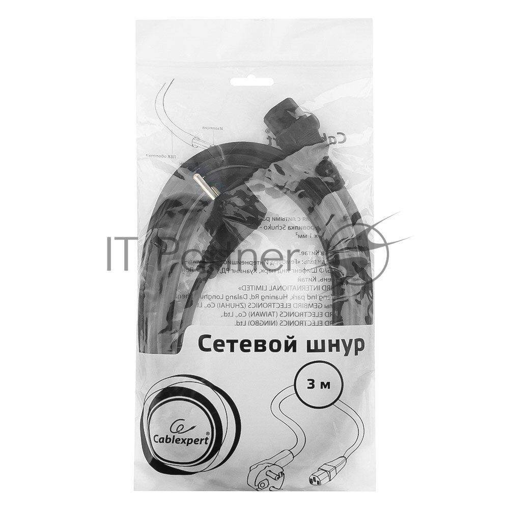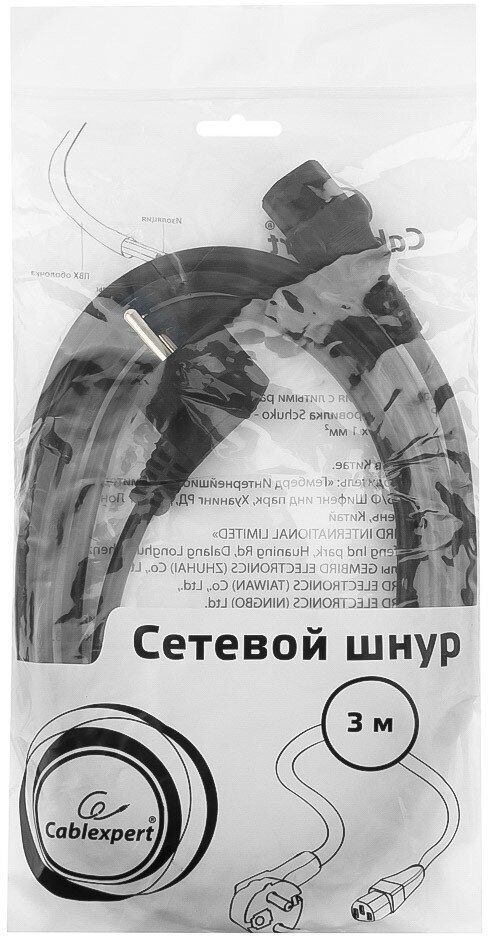 СохранитьКабель питания Cablexpert PC-186-1-3M, 3м, Schuko- C13, 3x1кв.мм, черный, с заземлением, пакет интересное: