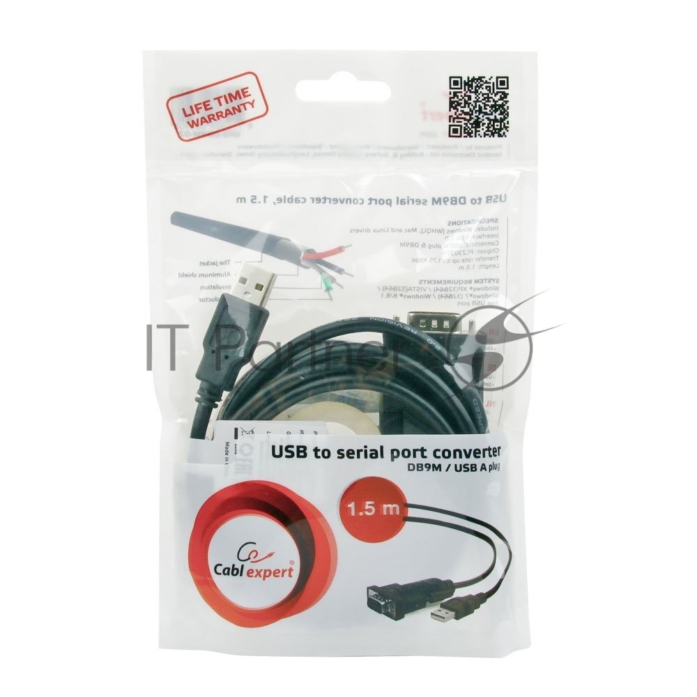 Конвертер USB->SERIAL Cablexpert AM/DB9M, 1,5 м, WinXP-Win8, черный, пакет