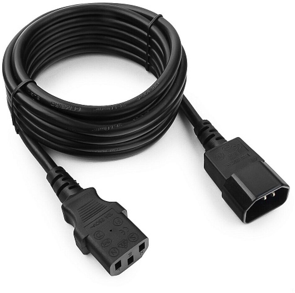 Кабель питания системный блок-монитор Cablexpert PC-189-1-3M, 3 м, C13-C14, 3x1кв.мм., черный, с заземлением