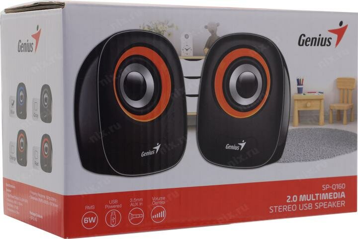 Акустическая система Genius SP-Q160 Orange 2.0 6 Вт пластик черный, оранжевый