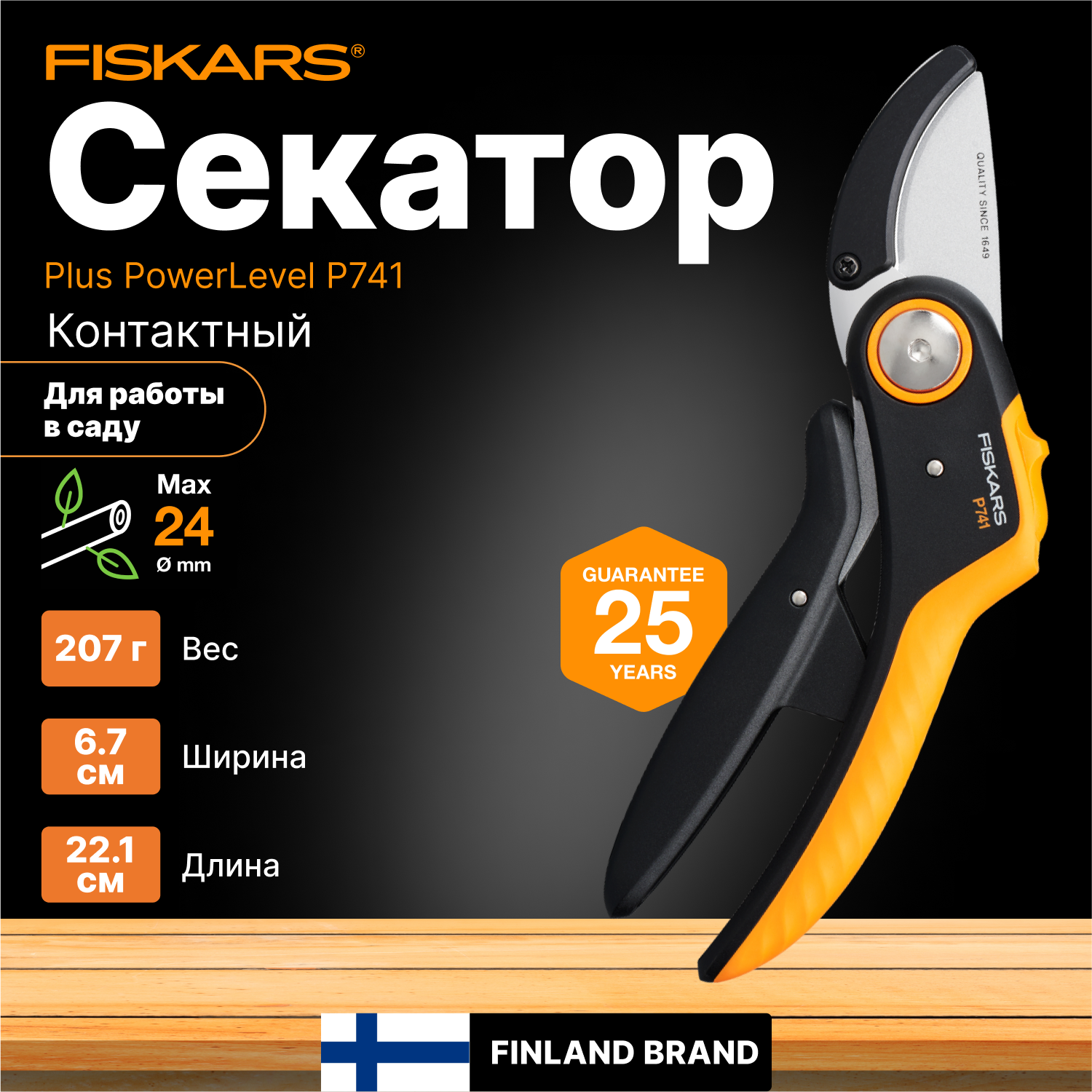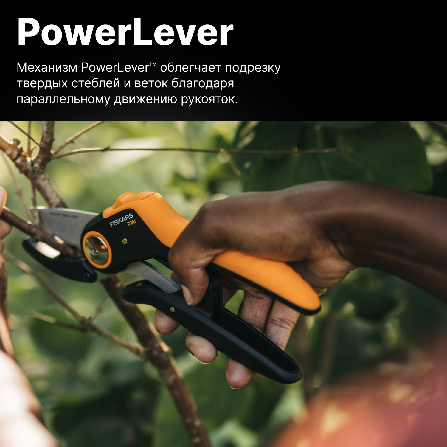 Секатор FISKARS Plus PowerLever P741 черный/оранжевый 1057171