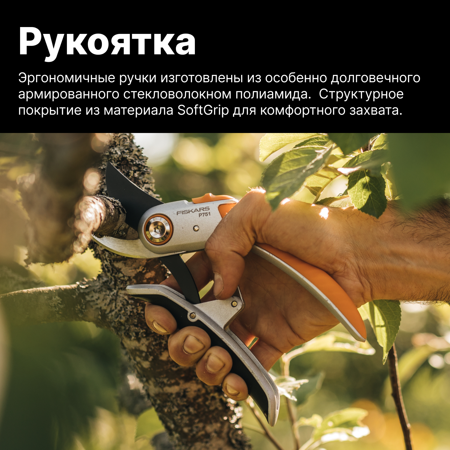 Секатор FISKARS Plus PowerLever P751 серебристый/черный/оранжевый 1057172
