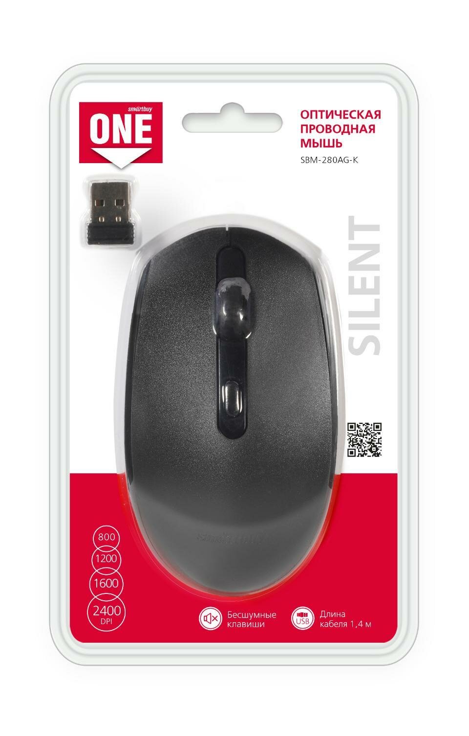 Мышь беспроводная Smartbuy ONE 280AG USB/DPI 800-1200-1600/4 кнопки/1AA черная (SBM-280AG-K)