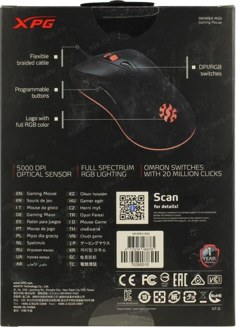 Ниже Вы можете прочитать отзывы на Игровая мышь XPG INFAREX M20 (5 кнопок, OMRON, 5000 dpi, RGB подсветка, USB), ознакомится с подробными характеристиками, посмотреть интересные обзоры и фотографии на Игровая мышь XPG INFAREX M20 (5 кнопок, OMRON, 5000 dpi, RGB подсветка, USB).